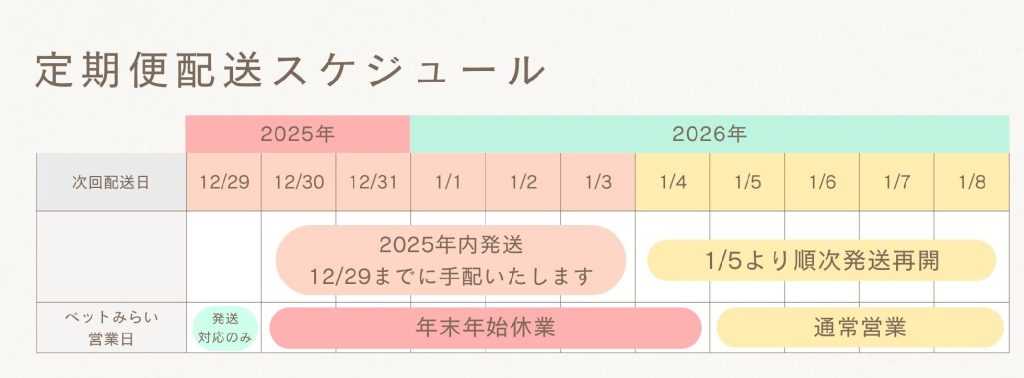 次回配送予定が2026年1月3日(土)まで分につきまして、2025年内に出荷予定となっております。
