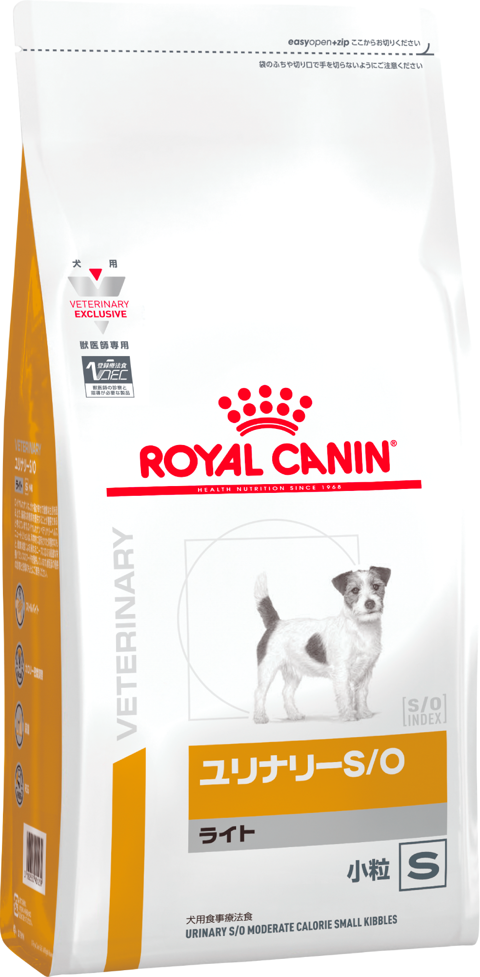 犬用 ユリナリーS/O ライト 小粒は、下部尿路疾患(ストルバイト結石症およびシュウ酸カルシウム結石症)の犬に給与することを目的として、特別に調製された食事療法食です。この食事は、マグネシウムなどのミネラル成分を調整しています。さらに、体重過多に配慮してカロリー密度を低く調整しています。